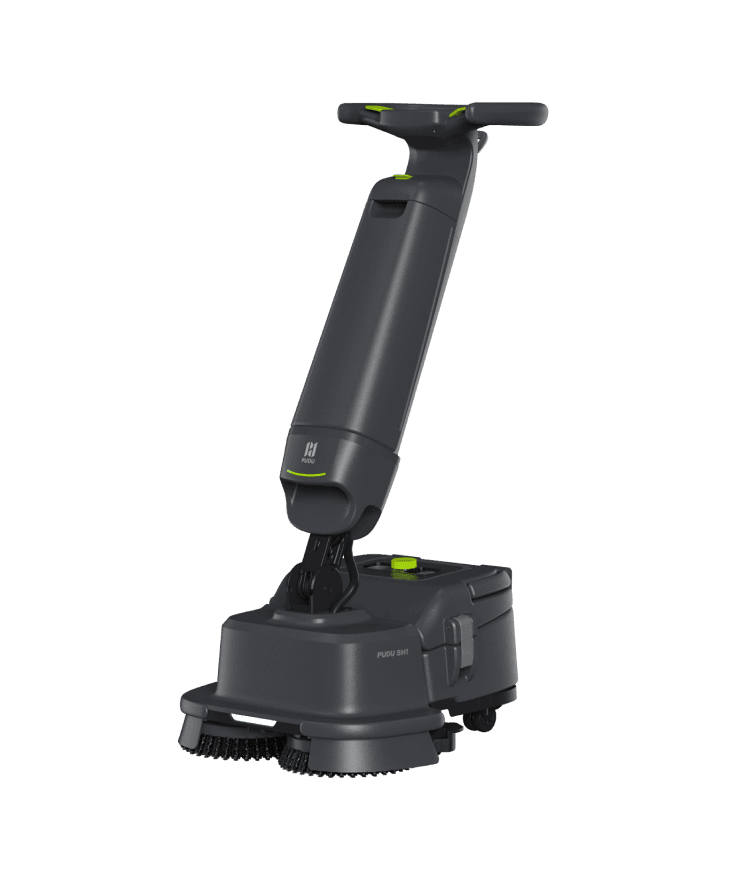 A sleek, upright floor scrubber that cleans faster and uses less water and chemicals, making it perfect for tight spaces, edges, and even glass—with smart features that simplify every step.
